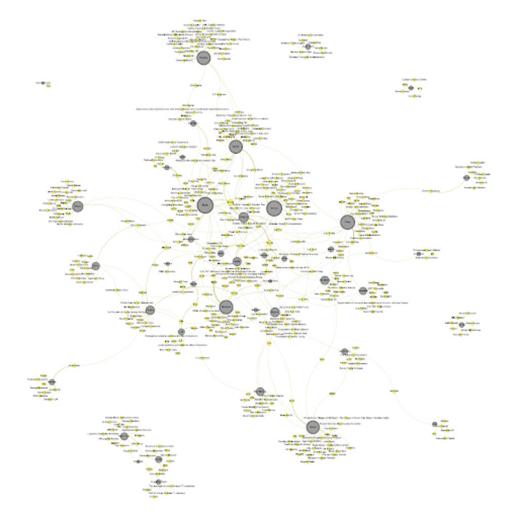 An analysis of the network of partnerships in the field of autonomous vehicles reveals several important patterns: